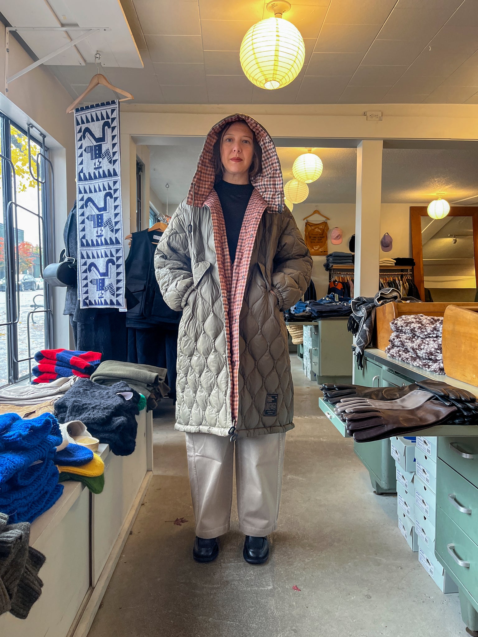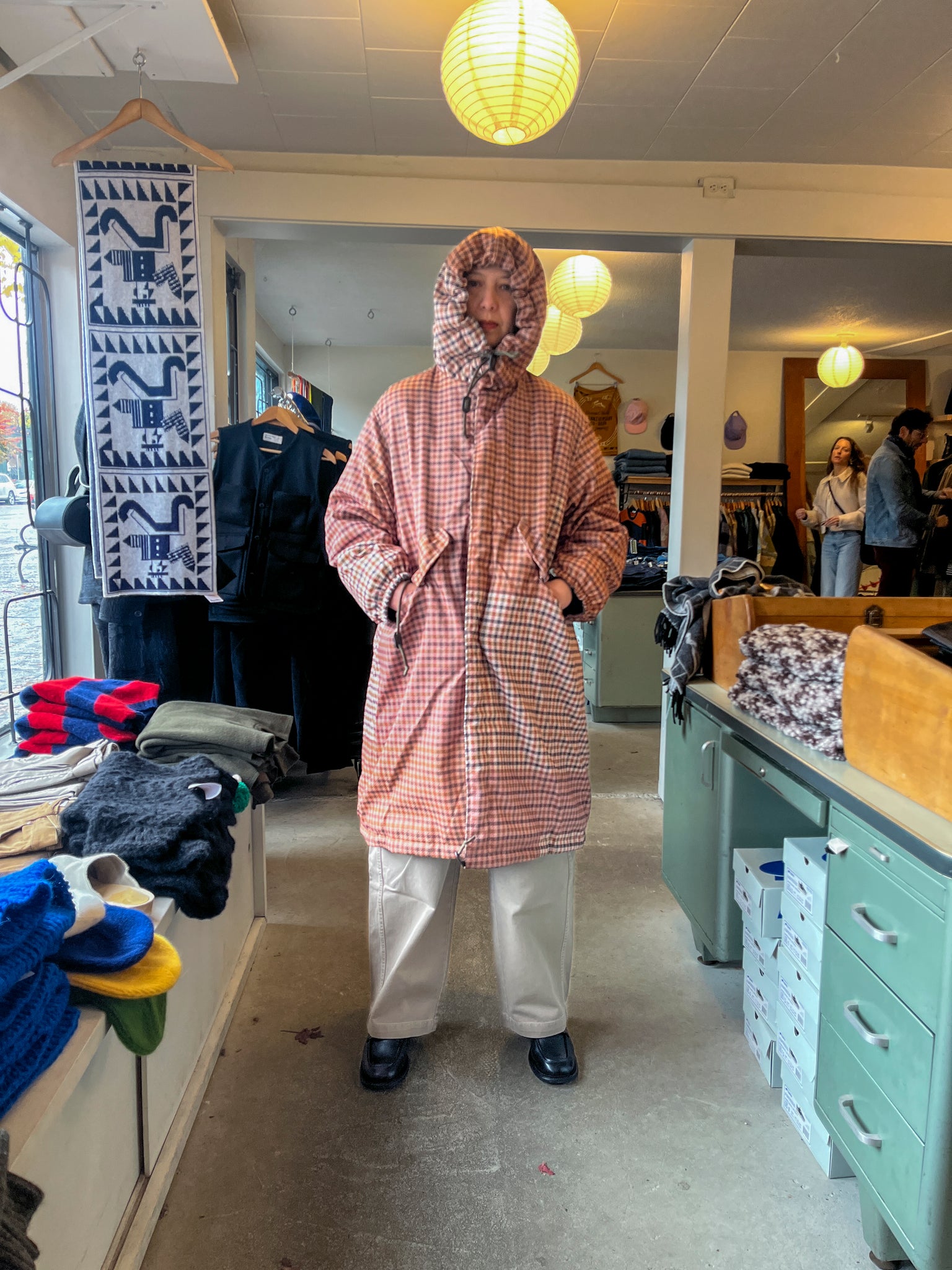 This reversible Parka is a creative collaboration between Universal Works and Taion Japan, giving you two distinct personalities in one garment. Flip between a nostalgic faux patchwork tweed side that nods to classic warmth and a contemporary reverse that keeps things fresh.